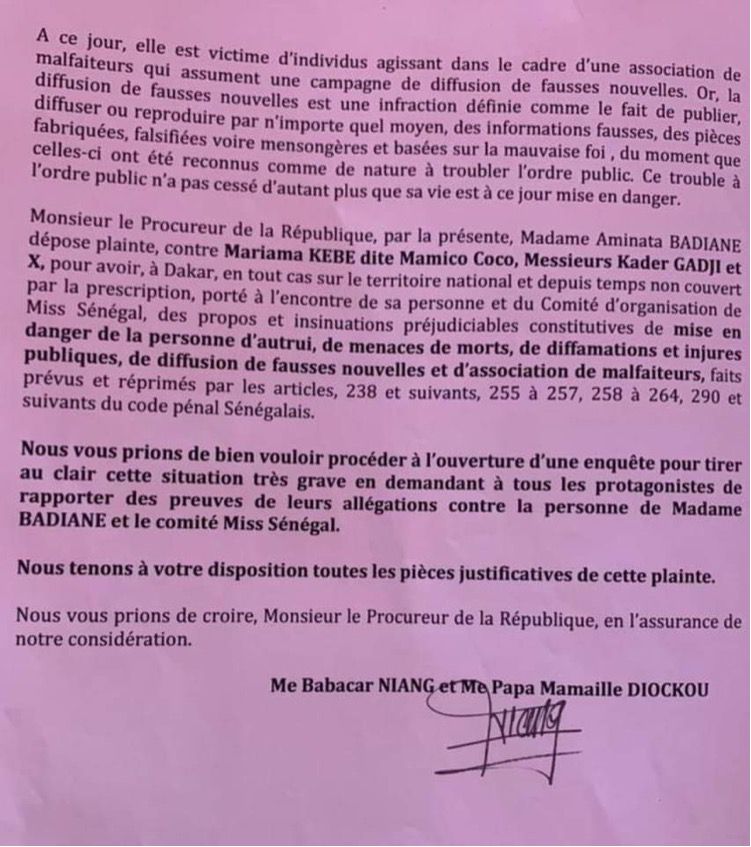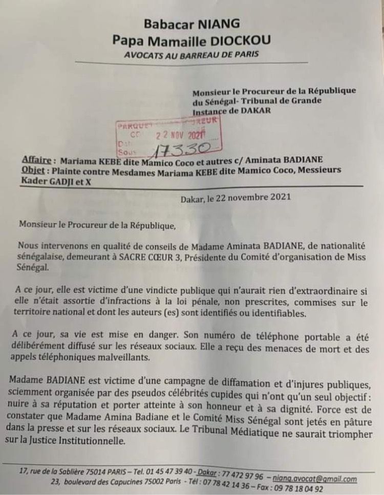 Actualités Société Affaire “Miss Sénégal” : La plainte d’Amina Badiane 23 novembre 202123 novembre 2021 jotalixibar Partager l'article Partager : Cliquer pour partager sur X(ouvre dans une nouvelle fenêtre) X Cliquez pour partager sur Facebook(ouvre dans une nouvelle fenêtre) Facebook Cliquez pour partager sur WhatsApp(ouvre dans une nouvelle fenêtre) WhatsApp Share Facebook Twitter Pinterest Linkedin