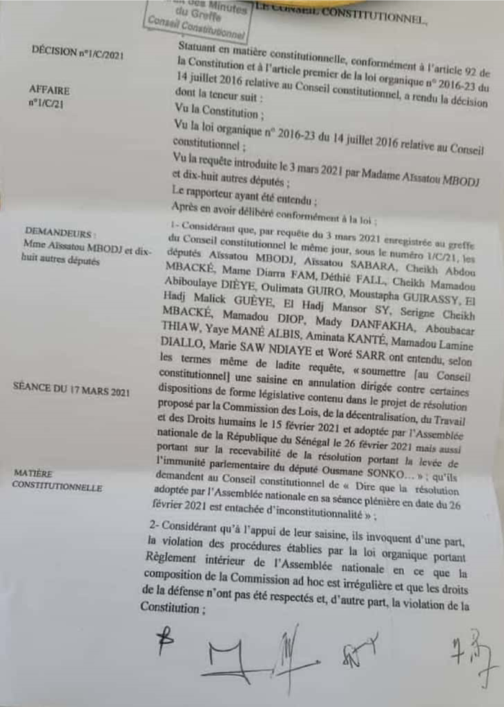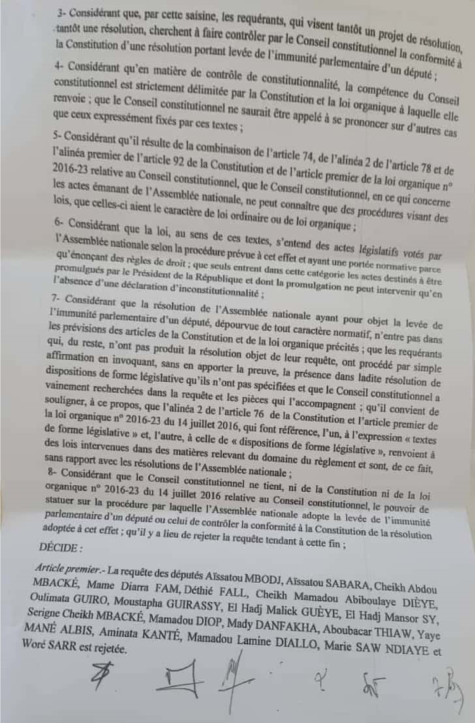 Le Conseil constitutionnel a rejeté la demandé en annulation de la levée de l’immunité parlementaire du député Ousmane Sonko.