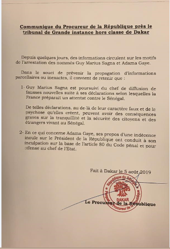 Actualités Société Arrestation de Guy Marius et Adama Gaye : Le Procureur s’explique 6 août 20196 août 2019 jotalixibar Partager l'article Partager : Cliquer pour partager sur X(ouvre dans une nouvelle fenêtre) X Cliquez pour partager sur Facebook(ouvre dans une nouvelle fenêtre) Facebook Cliquez pour partager sur WhatsApp(ouvre dans une nouvelle fenêtre) WhatsApp Share Facebook Twitter Pinterest Linkedin