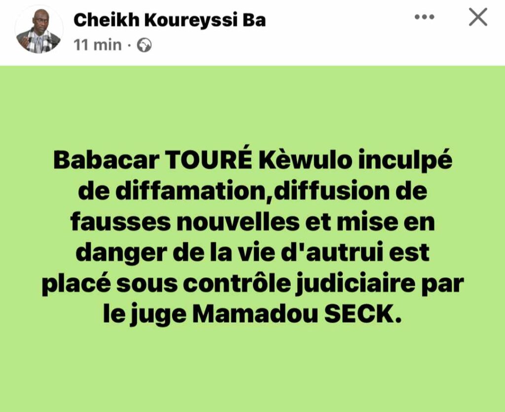 Après avoir bénéficié de plusieurs retours de parquets Babacar Touré à été inculpé et placé sous contrôle judiciaire par le juge du deuxième cabinet, Moustapha Seck.