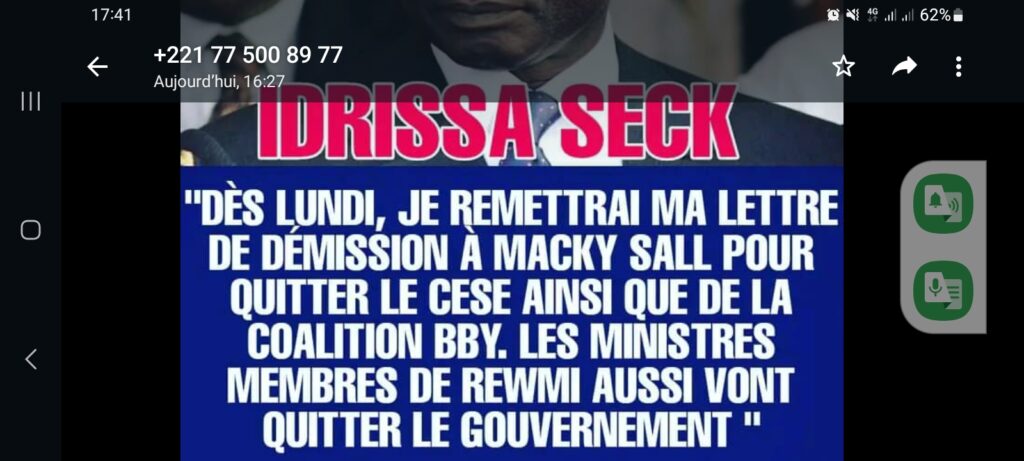 Il a ensuite annoncé, selon xalimasn, son départ de la mouvance présidentielle Benno Bok Yakar.