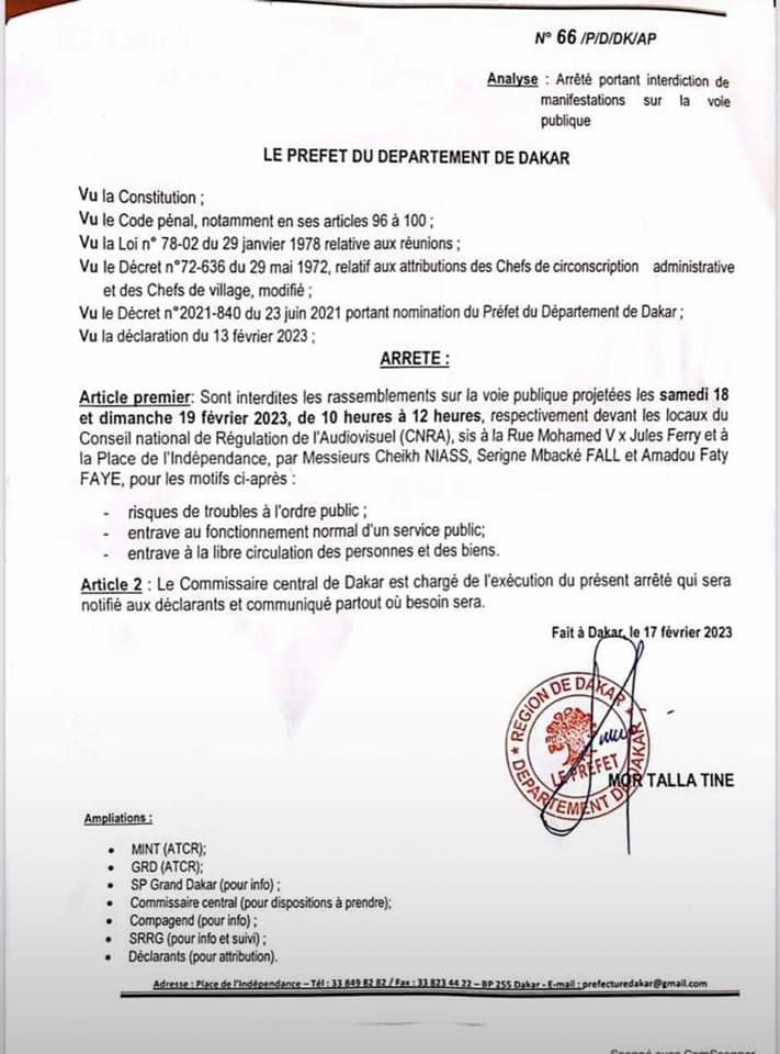 Le patron du groupe Walfadjiri ne tiendra pas son rassemblement à la place de l’indépendance. Le préfet de Dakar évoque des troubles à l’ordre public…