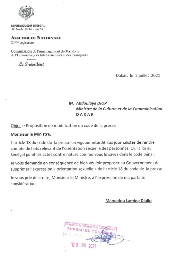 Dans une note adressée au ministre de la Culture et de la communication, le député Mamadou Lamine Diallo demande la modification du code de la presse. Il souligne que le peuple sénégalais s’oppose à l’exécution de l’agenda gay et exige la criminalisation de l’homosexualité.