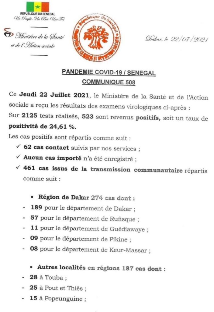 Actualités Santé Coronavirus : 523 cas positifs dont 461 issus de la transmission communautaire et 10 décès 22 juillet 202122 juillet 2021 jotalixibar Partager l'article Partager : Cliquer pour partager sur X(ouvre dans une nouvelle fenêtre) X Cliquez pour partager sur Facebook(ouvre dans une nouvelle fenêtre) Facebook Cliquez pour partager sur WhatsApp(ouvre dans une nouvelle fenêtre) WhatsApp Share Facebook Twitter Pinterest Linkedin