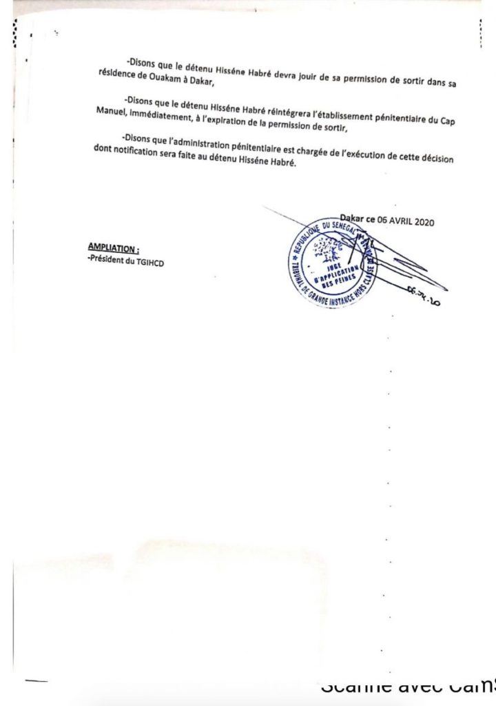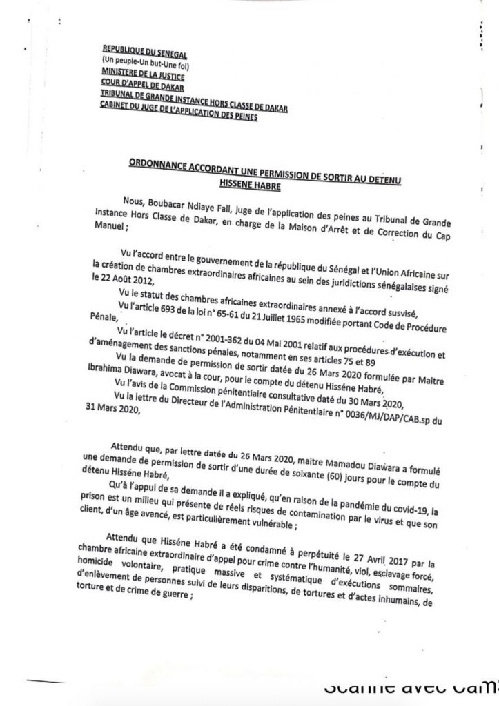 Maître Assane Dioma Ndiaye, l’un des avocats sénégalais du collectif des victimes du régime d’Hissène Habré, précise bien qu’il ne s’agit en aucun cas d’une grâce et qu’Hissène Habré devra retourner en prison, renseigne Rfi.