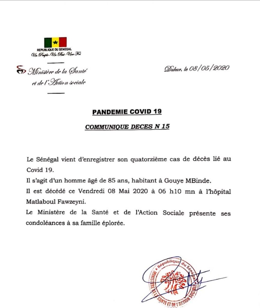 Actualités Santé Covid-19 : Le Sénégal enregistre son 14e décès 8 mai 20208 mai 2020 jotalixibar Partager l'article Partager : Cliquer pour partager sur X(ouvre dans une nouvelle fenêtre) X Cliquez pour partager sur Facebook(ouvre dans une nouvelle fenêtre) Facebook Cliquez pour partager sur WhatsApp(ouvre dans une nouvelle fenêtre) WhatsApp Share Facebook Twitter Pinterest Linkedin