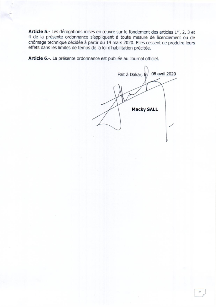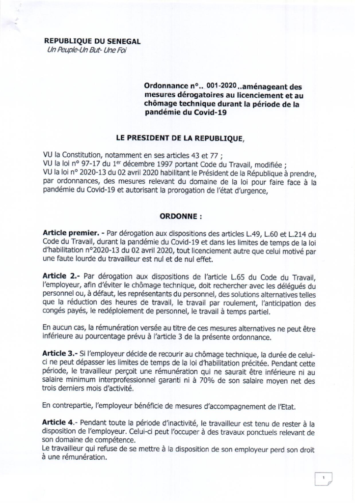 Le ministre du Travail, Samba Sy, a soutenu ce vendredi, lors d’une brève déclaration que «l’Etat du Sénégal interdit tout licenciement dans les entreprises en cette période de pandémie du coronavirus, sauf pour faute lourde», rappelant l’ordonnance 1-2020, prise par le chef de l’Etat en date du 14 mars 2020.