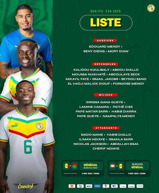Dans le cadre des éliminatoires de la CAN 2025 au Maroc, Aliou Cissé a fait appel à 26 Lions pour prendre part aux deux premières journées des éliminatoires de la Can Maroc-2025. Dans la liste rendue publique ce vendredi, la seule nouvelle nouveauté est l’arrivée de El Hadji Malick Diouf. Ce jeune de 19 ans, évoluant au Slavia Prague, a été formé à l’Académie Mawade Wade.
