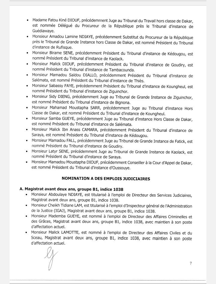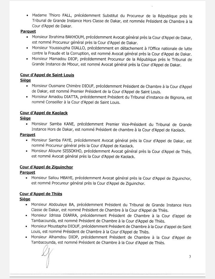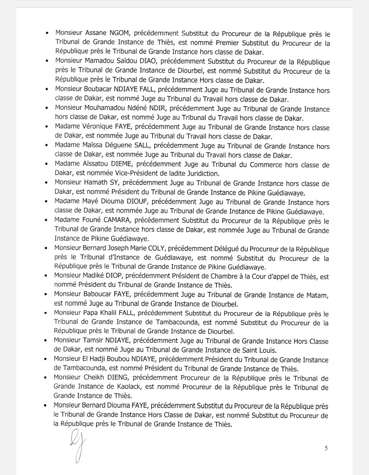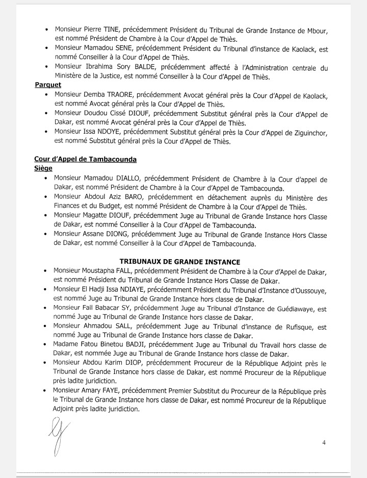 Pierre TINE, président du tribunal de grande instance de Mbour, affecté à La Cour d’Appel de Thiès.