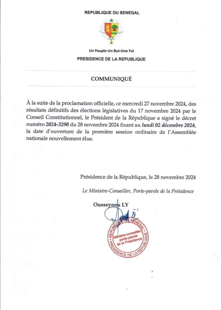 Actualités Politique Les députés installés ce lundi 2 décembre 2024 (officiel) 28 novembre 202428 novembre 2024 jotalixibar Partager l'article Partager : Cliquer pour partager sur X(ouvre dans une nouvelle fenêtre) X Cliquez pour partager sur Facebook(ouvre dans une nouvelle fenêtre) Facebook Cliquez pour partager sur WhatsApp(ouvre dans une nouvelle fenêtre) WhatsApp Share Facebook Twitter Pinterest Linkedin