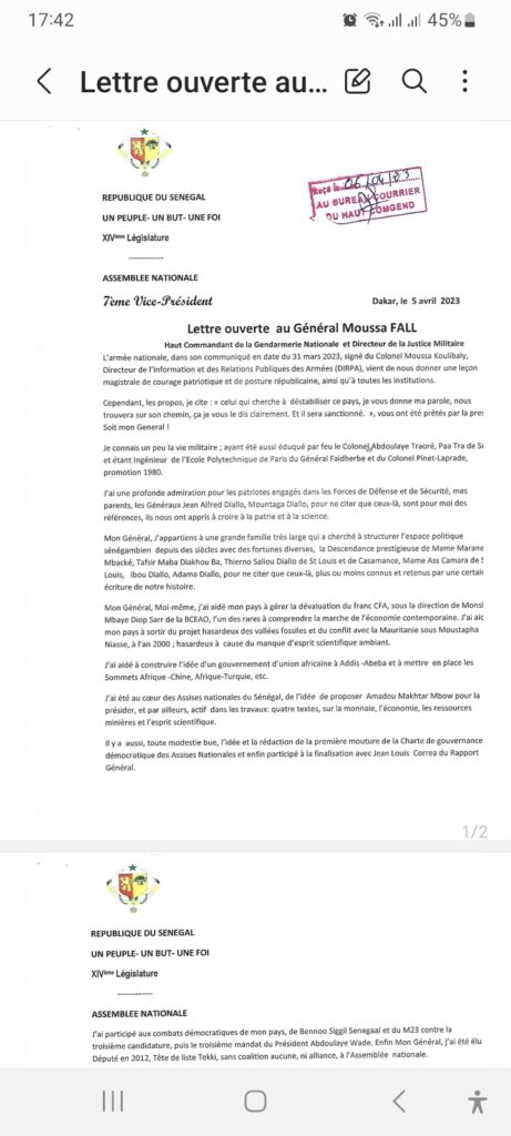 Actualités Politique Mamadou Lamine Diallo écrit au Général Moussa Fall 6 avril 20236 avril 2023 jotalixibar Partager l'article Partager : Cliquer pour partager sur X(ouvre dans une nouvelle fenêtre) X Cliquez pour partager sur Facebook(ouvre dans une nouvelle fenêtre) Facebook Cliquez pour partager sur WhatsApp(ouvre dans une nouvelle fenêtre) WhatsApp Share Facebook Twitter Pinterest Linkedin
