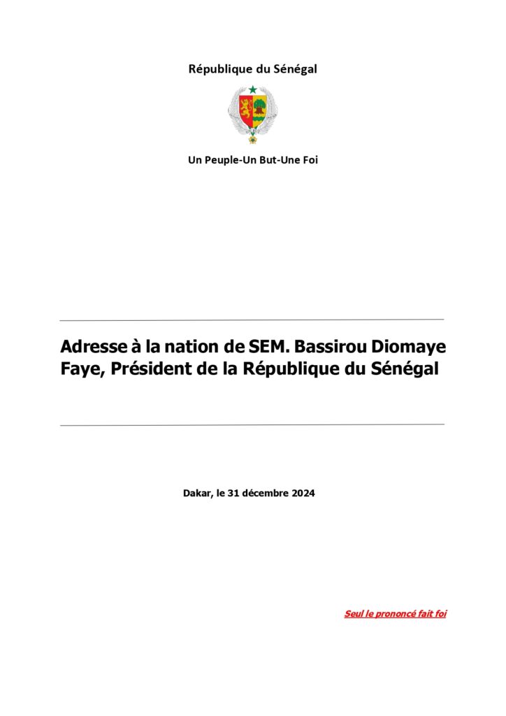 Actualités Politique Nouvel an 2025 : Adresse à la nation de SEM. Bassirou Diomaye Faye 1 janvier 20251 janvier 2025 jotalixibar Partager l'article Partager : Cliquer pour partager sur X(ouvre dans une nouvelle fenêtre) X Cliquez pour partager sur Facebook(ouvre dans une nouvelle fenêtre) Facebook Cliquez pour partager sur WhatsApp(ouvre dans une nouvelle fenêtre) WhatsApp Share Facebook Twitter Pinterest Linkedin