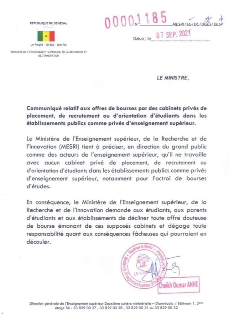Actualités Education Offres de bourses, placement d’étudiants par des Privés : Cheikh Oumar Anne s’en lave les mains 17 septembre 202117 septembre 2021 jotalixibar Partager l'article Partager : Cliquer pour partager sur X(ouvre dans une nouvelle fenêtre) X Cliquez pour partager sur Facebook(ouvre dans une nouvelle fenêtre) Facebook Cliquez pour partager sur WhatsApp(ouvre dans une nouvelle fenêtre) WhatsApp Share Facebook Twitter Pinterest Linkedin