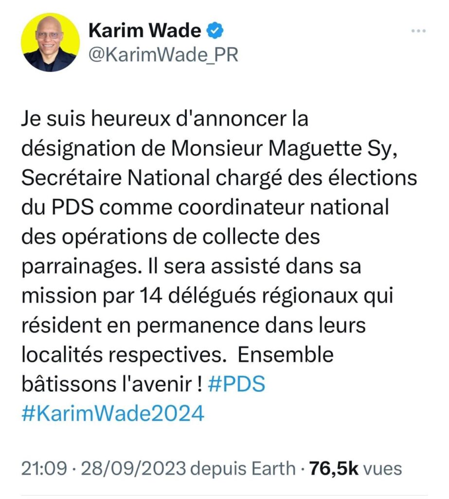 Actualités Politique PDS : Maguette Sy nommé coordonnateur pour les parrainages 29 septembre 202329 septembre 2023 jotalixibar Partager l'article Partager : Cliquer pour partager sur X(ouvre dans une nouvelle fenêtre) X Cliquez pour partager sur Facebook(ouvre dans une nouvelle fenêtre) Facebook Cliquez pour partager sur WhatsApp(ouvre dans une nouvelle fenêtre) WhatsApp Share Facebook Twitter Pinterest Linkedin