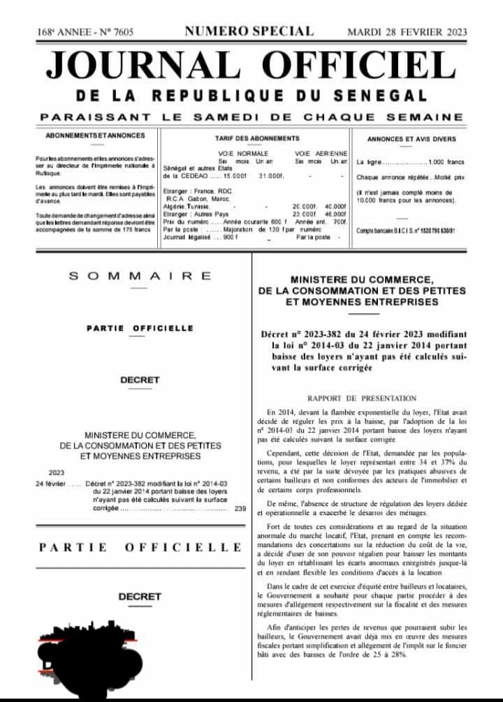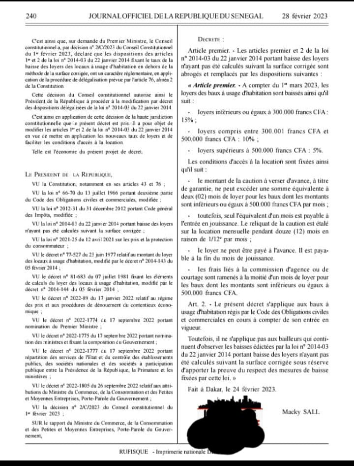Le président de la République, Macky Sall, a signé le décret actant la baisse des coûts du loyer. Le texte, qui modifie la loi de 2014, est même déjà publié dans le Journal officiel (Jo) sénégalais.