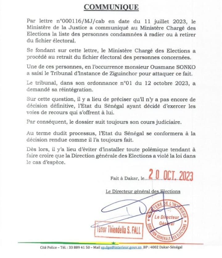Actualités Politique Radiation de Sonko des listes électorales : les explications de la Direction générale des élections 20 octobre 202320 octobre 2023 jotalixibar Partager l'article Partager : Cliquer pour partager sur X(ouvre dans une nouvelle fenêtre) X Cliquez pour partager sur Facebook(ouvre dans une nouvelle fenêtre) Facebook Cliquez pour partager sur WhatsApp(ouvre dans une nouvelle fenêtre) WhatsApp Share Facebook Twitter Pinterest Linkedin
