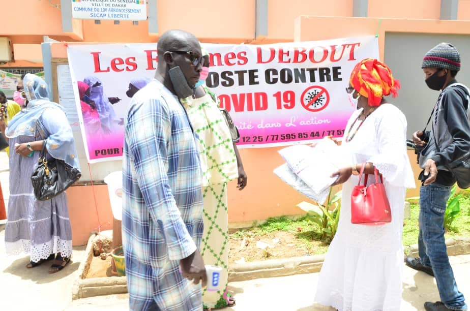 Apres l’étape du marchés castors le vendredi dernier avec le maire Cheikv Gueye, les femmes DEBOUT/ Riposte COVID 19 ont été ce matin en compagnie du Maire des Sicap Santi Sène Agne et les responsables femmes des 2 marchés de Liberté 6.