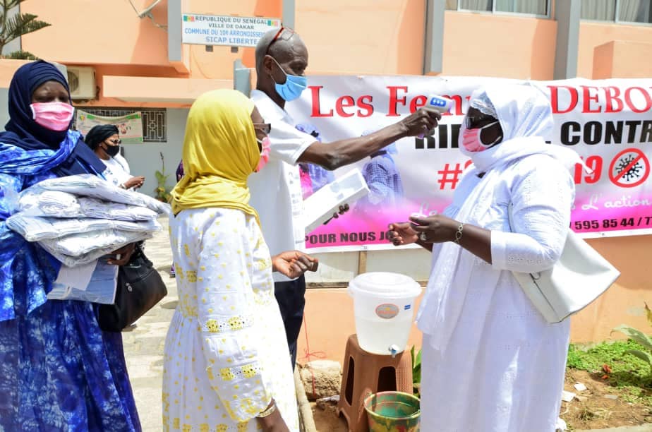 La Présidente de la Plateforme Femmes DEBOUT, ancien ministre et ancien présidente de la commission santé de l’assemblée nationale est revenue sur mesures barrières avant de procéder à la distribution de 1000 masques en faveur des femmes des deux marchés et des vendeuses du “coin” des Sicap liberté.