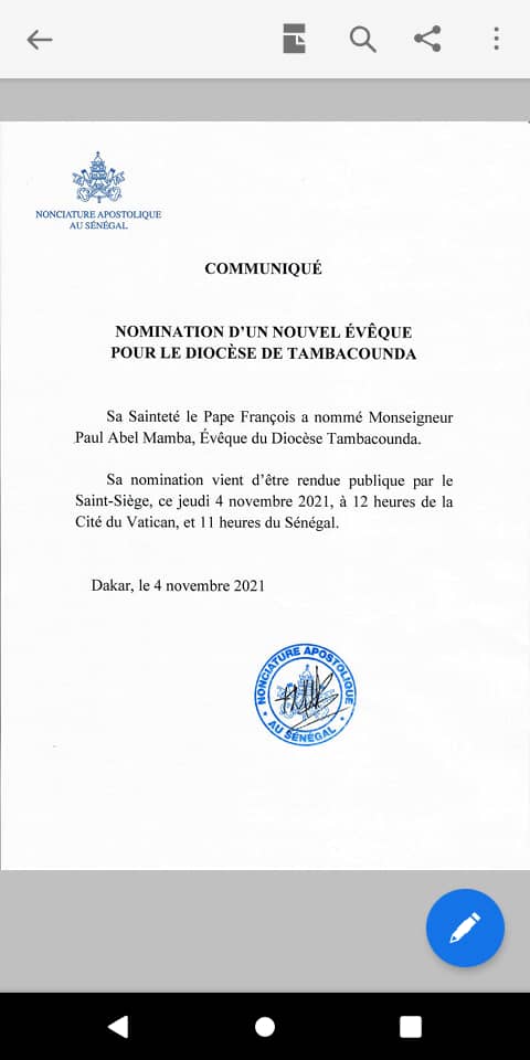 Le Saint-Père a nommé jeudi 4 novembre 2021, Mgr Paul Abel Mamba, évêque diocèse de Tambacounda au Sénégal, le transférant du siège de Ziguinchor.