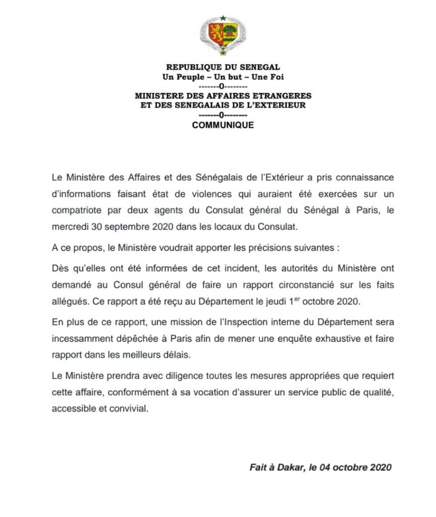 Actualités Politique “Violence” au Consulat du Sénégal à Paris : Les précisions du ministère de tutelle 5 octobre 20205 octobre 2020 jotalixibar Partager l'article Partager : Cliquer pour partager sur X(ouvre dans une nouvelle fenêtre) X Cliquez pour partager sur Facebook(ouvre dans une nouvelle fenêtre) Facebook Cliquez pour partager sur WhatsApp(ouvre dans une nouvelle fenêtre) WhatsApp Share Facebook Twitter Pinterest Linkedin